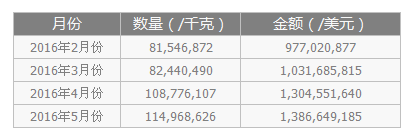2016年2至5月份LED出口海關(guān)數(shù)據(jù)